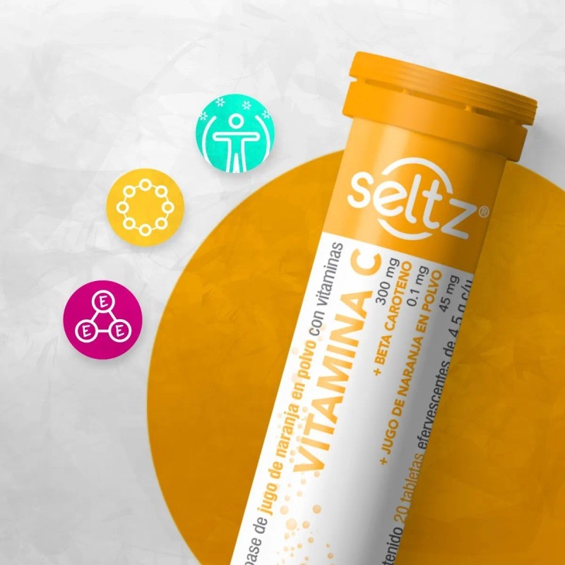 Seltz es un suplemento alimenticio que contiene diferentes tipos de vitaminas, creados para toda la familia, con dos líneas de producto, tabletas efervescentes y bebida vitaminada ligeramente carbonatada.