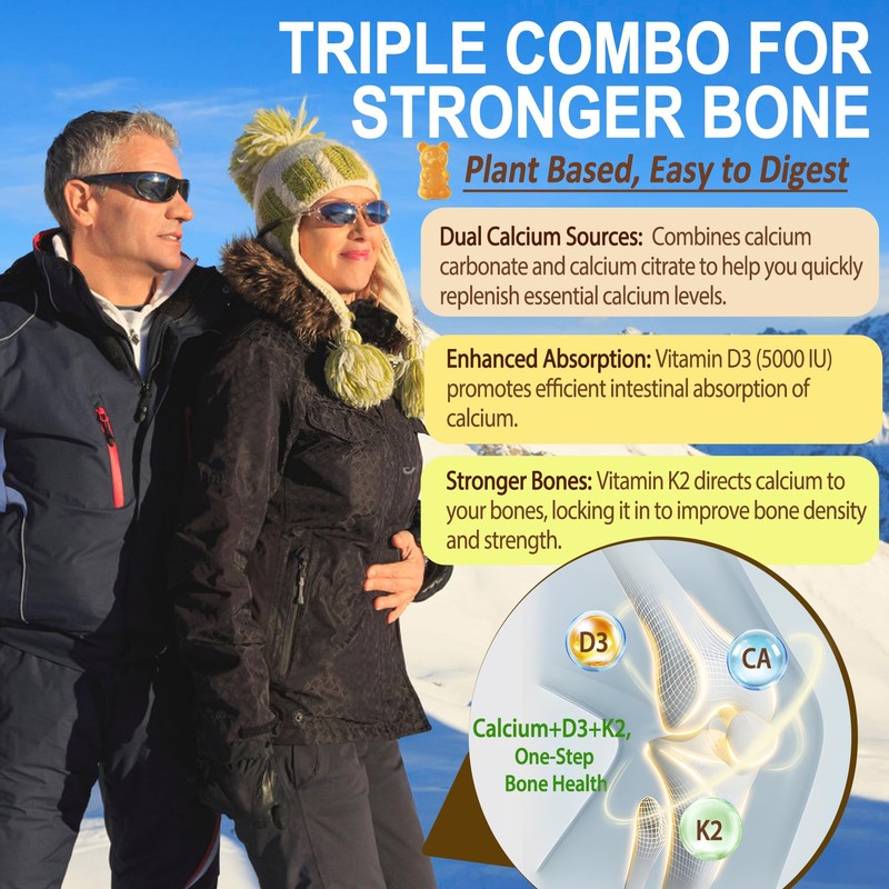 🌟 ⭐ Vitamina D3 5000iu y K2 (como MK7) Gomitas de 200 mcg + 600 mg de calcio, con aceite de coco para una alta absorción, suplemento de vitamina D3 K2 de máxima fuerza, apoyo para huesos musculares ⭐ 🌟