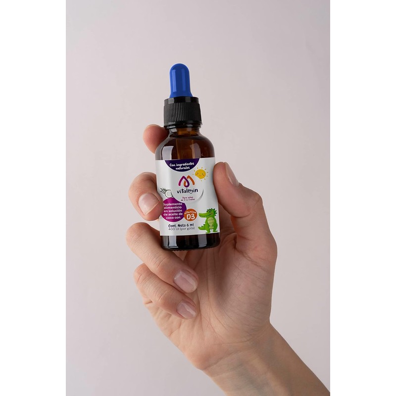 Vitamina D3 VITALMIN, Suplemento Alimenticio en Solución de Aceite de Coco, 180 Gotas por Frasco, 6 ml, Apoyo para el Sistema Inmunológico, Salud Ósea y Dental, Absorción Rápida y Fácil de Dosificar.
