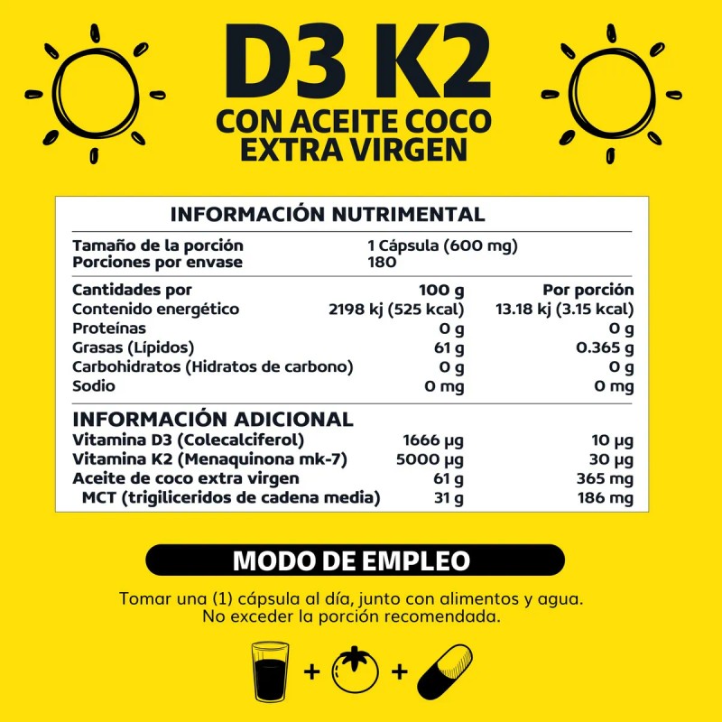 Beyond Vitamins - Vitamina D3 + Vitamina K2 con Aceite de Coco Extra Virgen | MCT (Trigliceridos) Aceite Coco Capsulas| Cápsula Blanda Premium - Vitaminas Mujer / Hombre - (180 Caps). 💯 Autenticidad y máxima durabilidad comprobadas. Diseño ergonómico y funcionalidad excepcional. 💎 Calidad superior certificada. Ideal para quienes buscan lo mejor en calidad y estilo. Producto auténtico con satisfacción total asegurada. ¡No te quedes sin el tuyo y aprovecha esta oportunidad única!