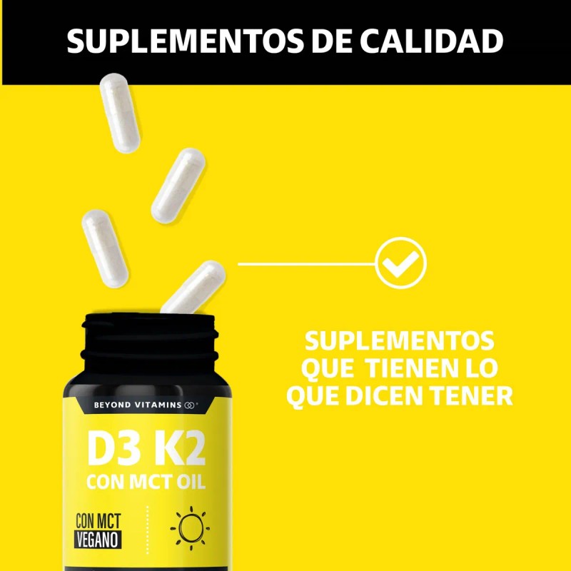 🌟 ⭐ Vitamina D3 + Vitamina K2 + Mct Oil | Sin Azúcar - Suplemento Alimenticio Vegano Beyond Vitamins - Vitaminas Mujer / Hombre - Ingredientes Non Gmo (180 Cápsulas) ⭐ 🌟