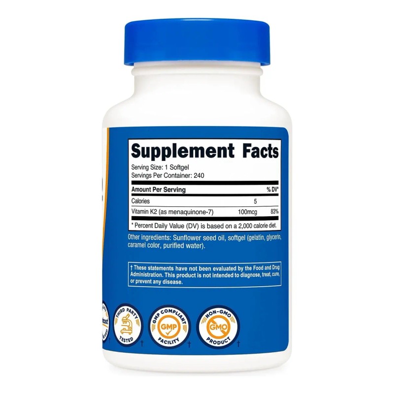Vitamina K2 Mk-7 Nutricost De 100 Mcg 240 Capsulas Sabor Sin Sabor