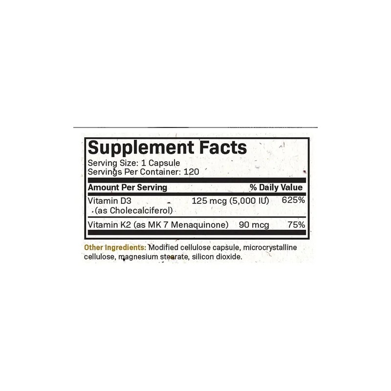 Vitamina K2 (mk7) + D3 5,000iu Con 250 Capsulas Hecho En Usa Sabor Sin Sabor