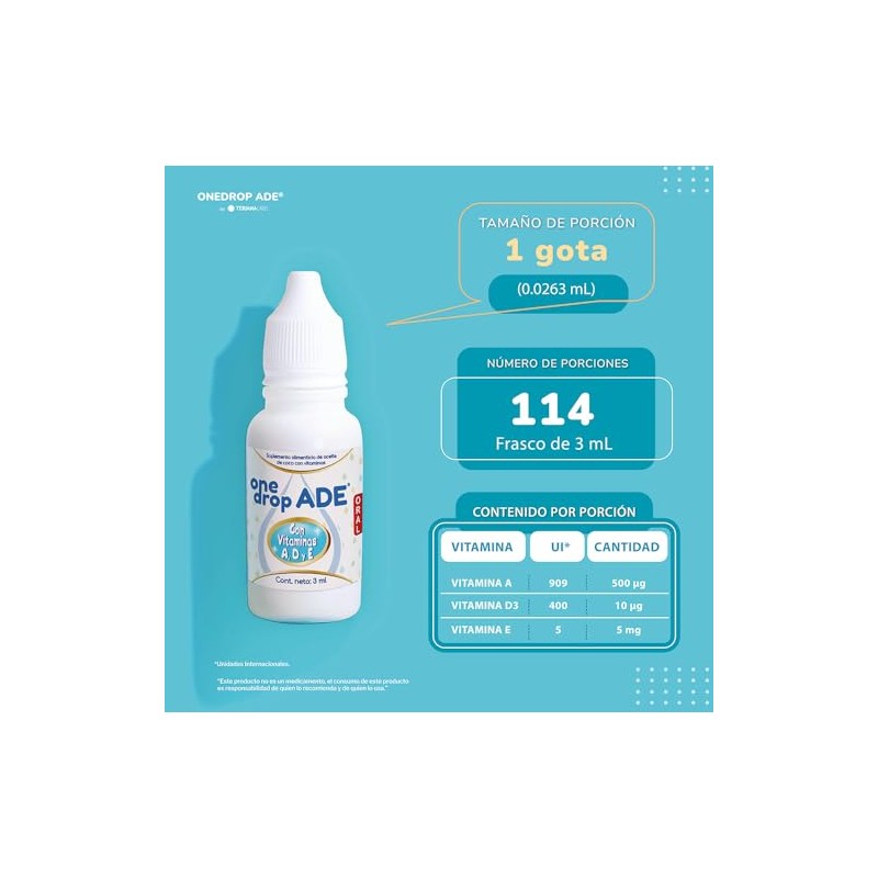 ONEDROP ADE - Vitamina ONEDROP ADE | Frasco de 3 ML (114 Gotas) | Rinde +3 meses | Vitamina A, D3 y E | Multivitamínico | Fácil de Usar | Sin Azúcar | Sin Gluten | Sin Sabor. ✅ Diseño innovador que supera las expectativas. Construcción robusta y atención al detalle. 💎 Calidad superior certificada. Ideal para quienes buscan lo mejor en calidad y estilo. Producto auténtico con satisfacción total asegurada. ¡No te quedes sin el tuyo y aprovecha esta oportunidad única!