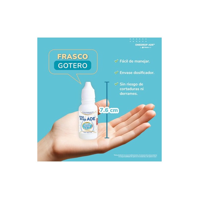 Vitamina ONEDROP ADE | Frasco de 3 ML (114 Gotas) | Rinde +3 meses | Vitamina A, D3 y E | Multivitamínico | Fácil de Usar | Sin Azúcar | Sin Gluten | Sin Sabor