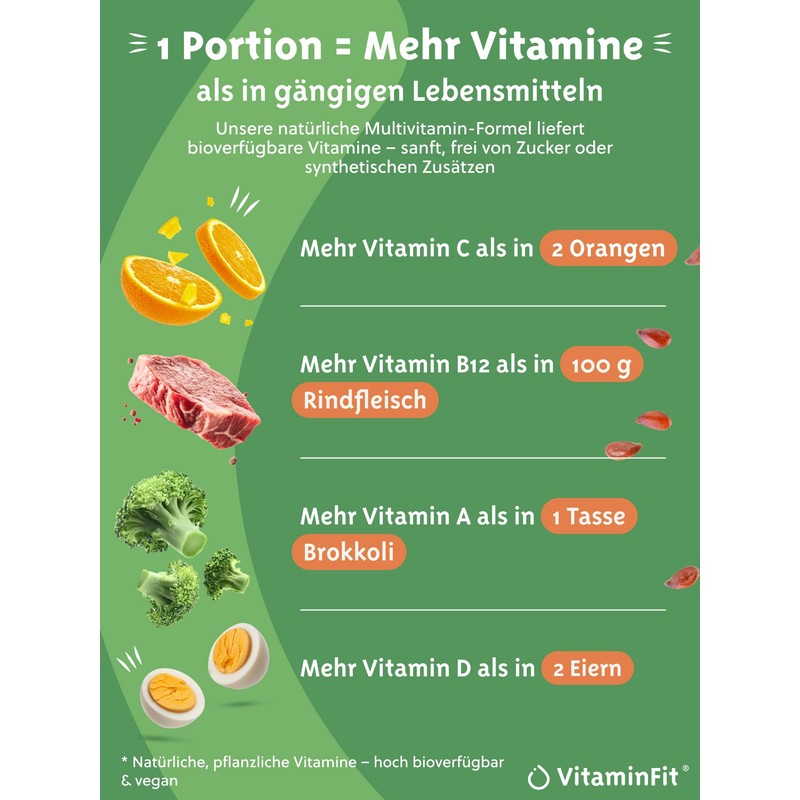 VitaminFit Multivitamin Tropfen bieten eine praktische M?glichkeit, 16 wichtige Vitamine und Mineralstoffe in flssiger Form aufzunehmen. Enthalten sind u.a. Vitamin A, C, E, K1, ein kompletter B-Komplex, Biotin, Folat und Zink C ideal fr Erwachsene und Kinder, die Kapseln oder Tabletten vermeiden m?chten.Die Tropfenform erm?glicht eine einfache, flexible Anwendung C pur oder gemischt mit Getr?nken oder Speisen. Die vegane Formel ist frei von Zucker, Alkohol, Gluten, Laktose, Farb- und Konservierungsstoffen und wird unter h?chsten Qualit?tsstandards in Europa produziert.Laborgeprft, HACCP-zertifiziert und nachhaltig verpackt C fr eine bewusste Ern?hrung im Familienalltag.