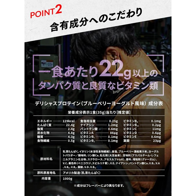 - 【VITAS デリシャスプロテイン ブルーベリーヨーグルト風味】美味しさ、溶けやすさ、成分にとことんこだわったプロテイン。厳選された乳清たんぱくを使用。毎日の栄養補給に最適で、トレーニングや美容をサポートします。