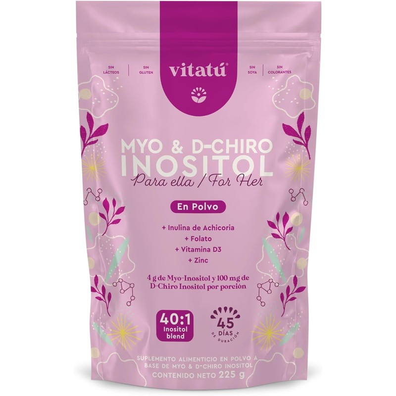 - 🌷 MYO & D CHIRO INOSITOL VITATÚ es un suplemento diseñado para mujeres a base de Myo Inositol, D-Chiro Inositol, Zinc, Folato y Vitamina D3. ✨ Relación 40:1 de Myo + D-Chiro Inositol. 4 g Myo Inositol por porción + 1 g D-Chiro Inositol por porción. ✨Sin azúcar añadida, gluten, lacteos, soya, saborizantes, colorantes o endulzantes artificiales