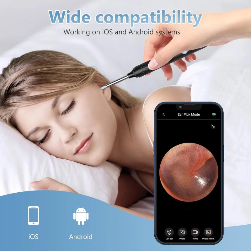 The earwax removal kit is compatible with Android and iOS phones and tablets, allowing you to save images or videos during operation. They are also equipped with soft silicone covers to provide additional protection, allowing you to use them with confidence