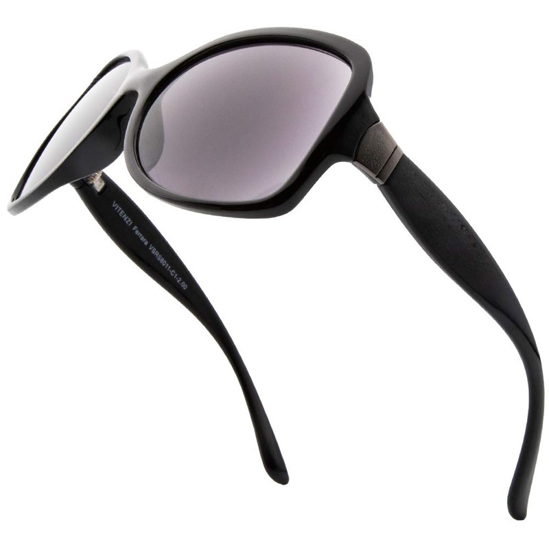 VITENZI Full Reader Sunglasses for Women, Oversized Reading Sunglasses with Built In Full Readers, Ferrara in Black 2.00