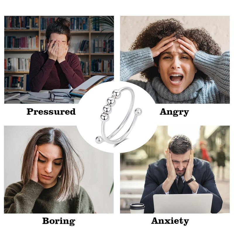 - ROTATABLE SPINNER RING: The fidget ring consists of a band with small beads that can be moved around with your fingers. full of personality and stylish.