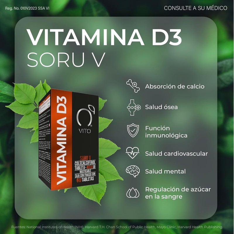 VITO Vitamina D3 4,000 UI | Colecalciferol | Prevención y Tratamiento de las Deficiencias de Vitamina D3 | 60 Tabletas Masticables