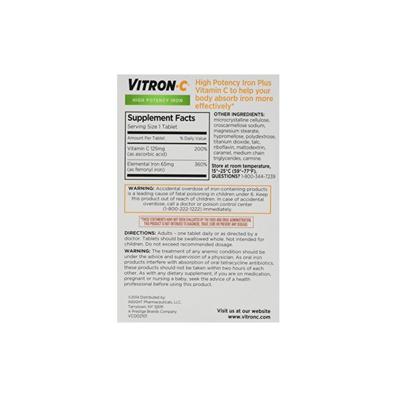 Vitron-c High Potency Iron Supplement Tablets 60 Ct (Pack of 2)