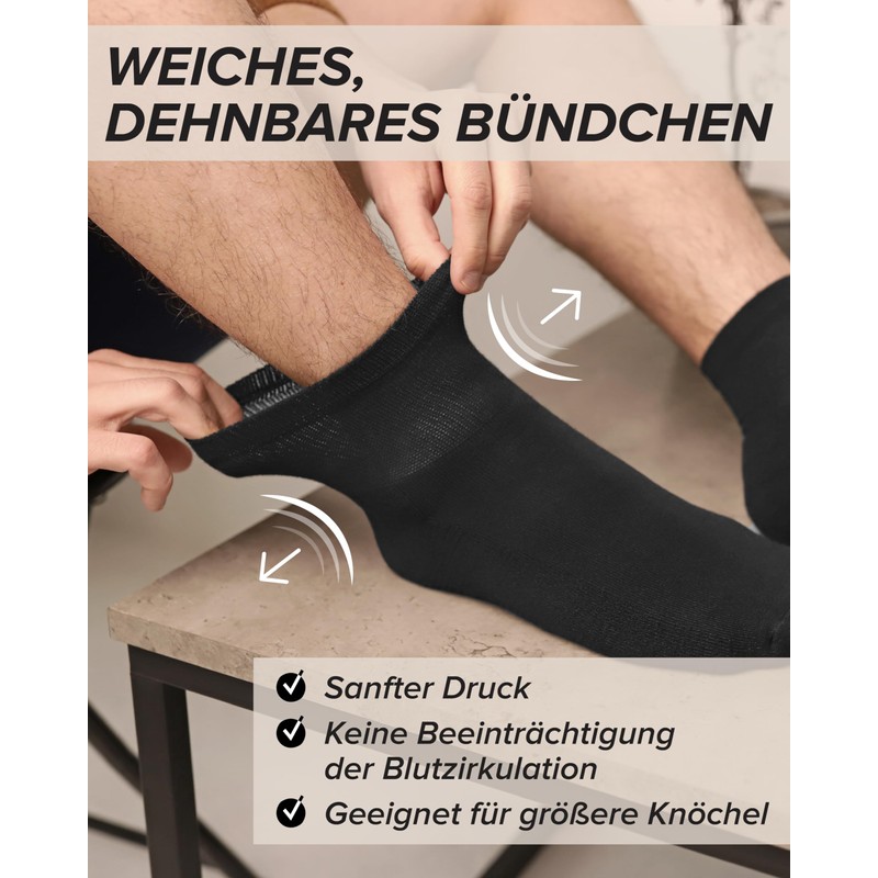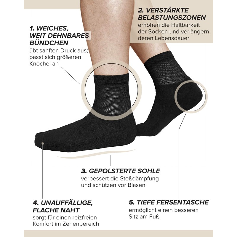 - Relaxed feet for the whole day; these comfortable wide socks for men offer a comfortable fit without constricting the legs or hindering blood circulation; the soft cuffs exert gentle pressure and stretch easily, so the socks are also suitable for larger ankles