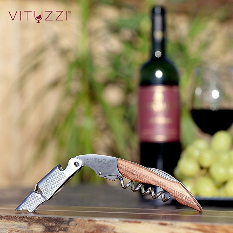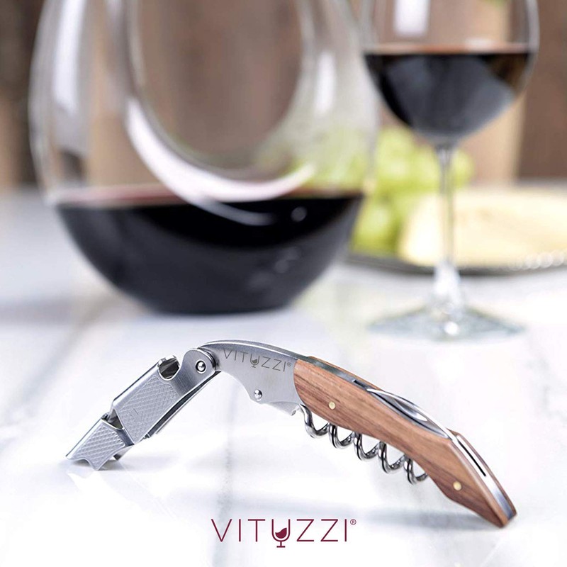Vituzzi Sacacorchos para Vino de Acero Inoxidable con Corta Cápsulas y Acabado de Madera de Alta Calidad. Saca Corchos para Sommelier Profesional con Práctico Mango de Fácil Agarre. Wine corkscrew (4)
