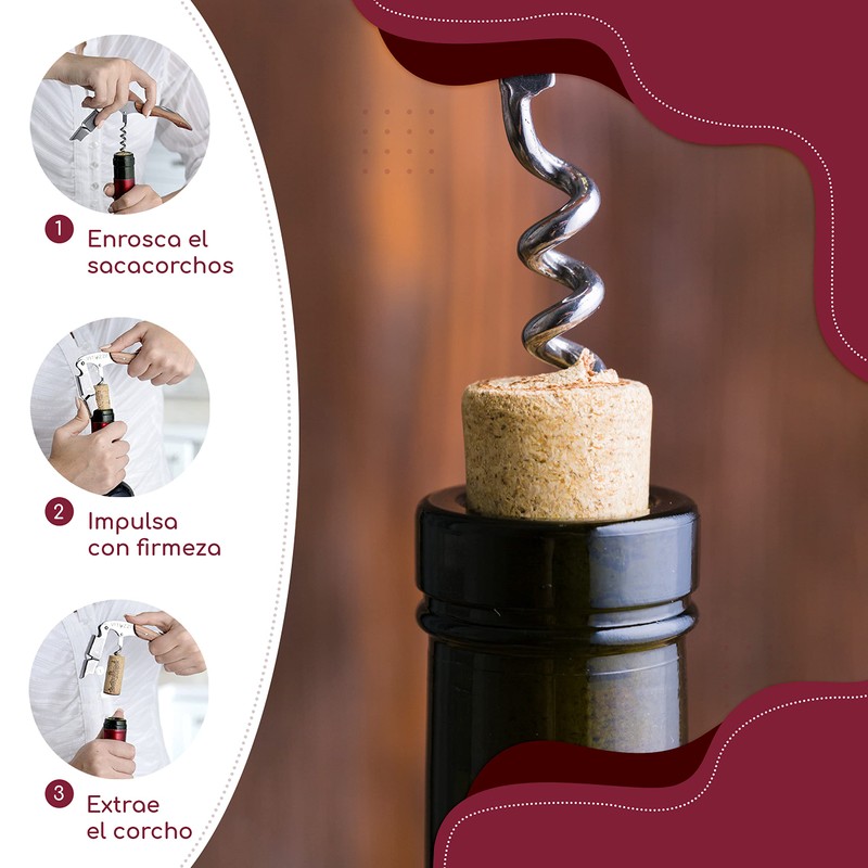 - 🍷【Compacto y Versátil】Tu Sacacorchos tiene una empuñadura ergonómica y ligeramente curveada para un cómodo y firme agarre al momento de abrir tus botellas de vino! Además su tamaño compacto te permitirá transportarlo con facilidad!