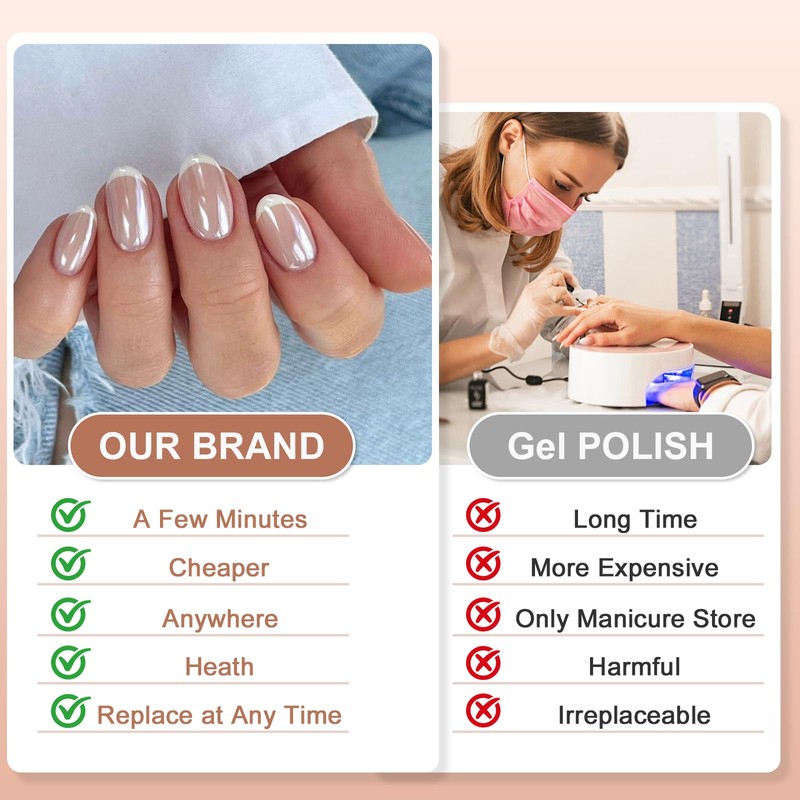 - 【Easy to Use】Gently file the sides and cuticle area with a nail file for a better fit. Choose the right size of jelly glue stickers, then press the matching false nails firmly onto your natural nails for about 20 seconds. Finally, trim the nails to your desired length. You'll have a natural and beautiful manicure in minutes. No long waits or expensive salon visits. You can effortlessly achieve a professional-looking manicure that’s secure, long-lasting, and full of shine and confidence.