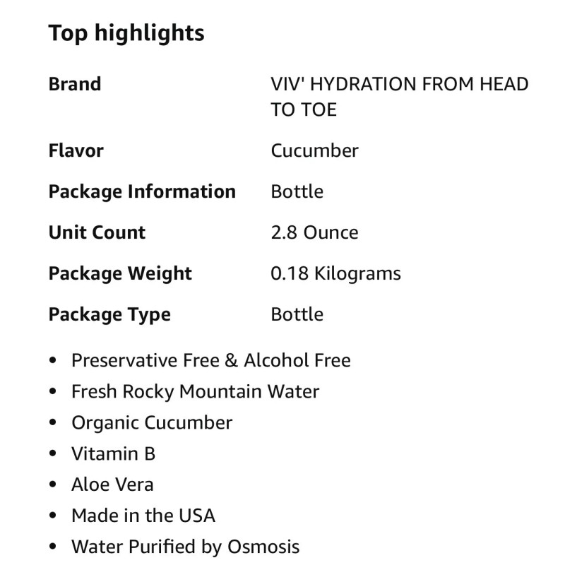 VIV Hydration Mist Organic Holistic Magnesium Body Spray