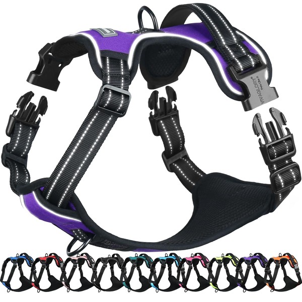 VIVAGLORY Easefit No Pull Dog Harness with Handle & Front Clip, No Pull & Heavy Duty for Puppy Pet, Dog Harness for Training & Walking, XS, Purple