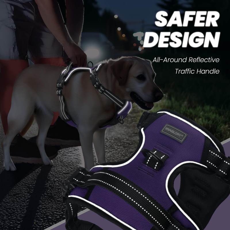 - Safety for Every Adventure: Designed with a padded traffic handle on the back, this escape proof no pull dog harness allows quick control in emergencies to keep your dog safe. 360° reflective trims run throughout the harness, ensuring visibility in low light. Ideal for daily walks, hiking, or training, it provides reliable support and peace of mind. Available in various colors and pairs with matching leashes and collars from the VIVAGLORY store