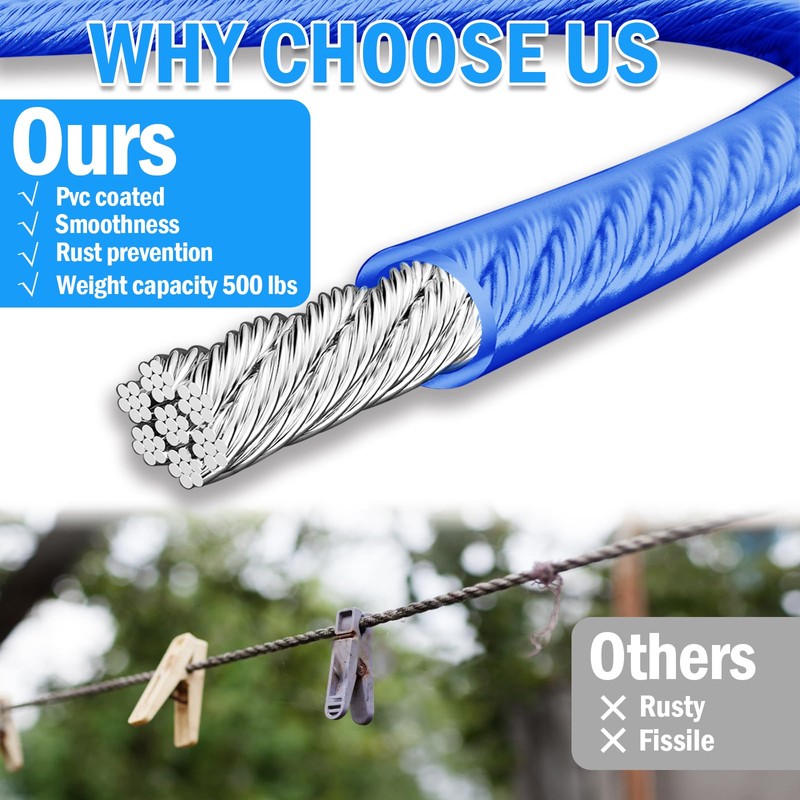 - Versatile Clothesline Kit: The VIVBOO40ft Clothes Line Outdoors with3/16" Wire Ropes and Blue PVC Coating offers a hassle-free drying solution, perfect for outdoor use with its heavy-duty construction.