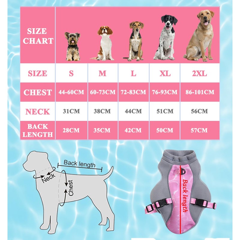 - Note: Due to the different body shapes of the dog breeds, the cooling vest may not cover longer dog breeds. Thank you for your understanding.