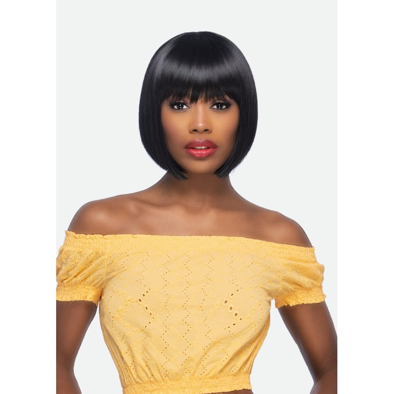 Vivica A. Fox Amore Mio Collection Short Length 10.5″ Fringed End Bob Straight with Swept Bang Style High Heat Synthetic Hair - AW-BANDI (FS4/27)