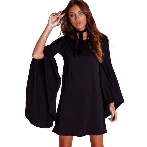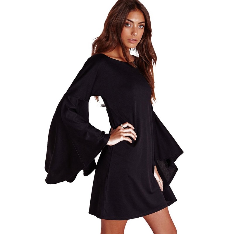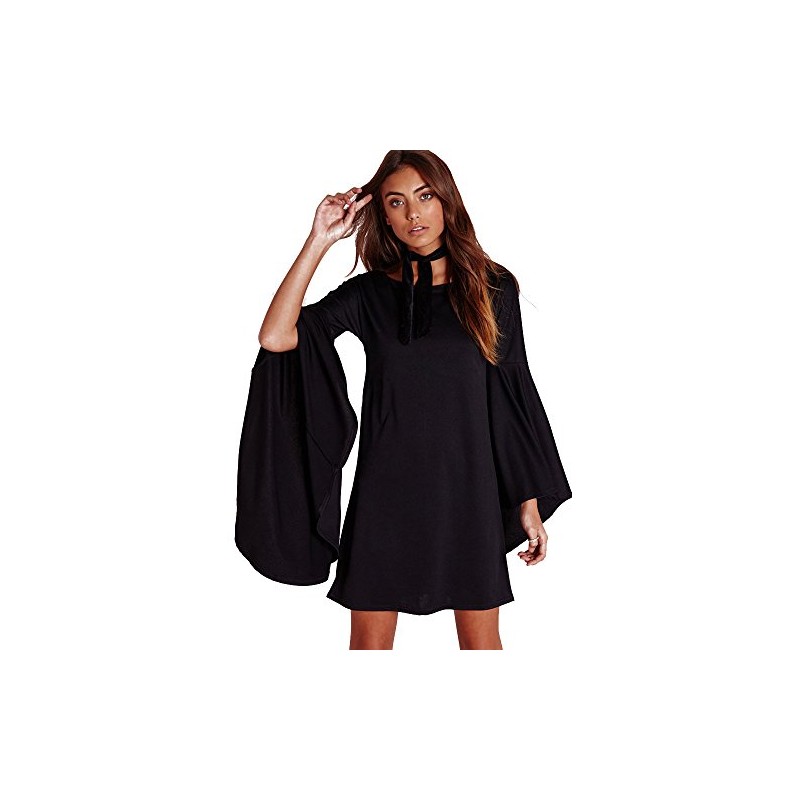 Vivicastle Long Flare Bell Sleeve Blouse Mini Dress (Large, Black)