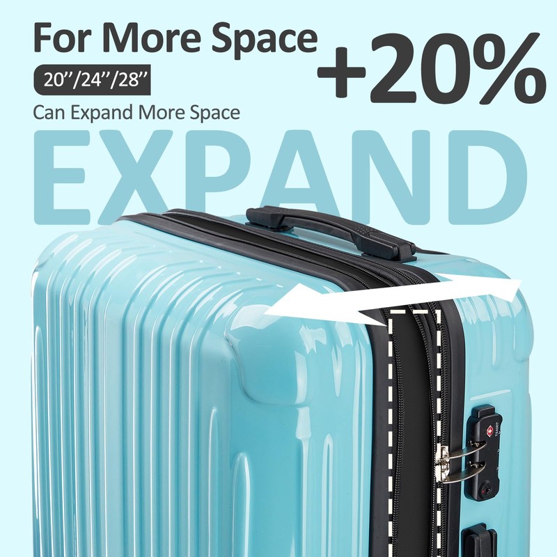VIVIcity Carry on Luggage 2 Sets(20in/24in) with Spinner Wheels, Lightweight PC+ABS Hard Shell Suitcases, Expandbale Storage & TSA Aprovel Lock