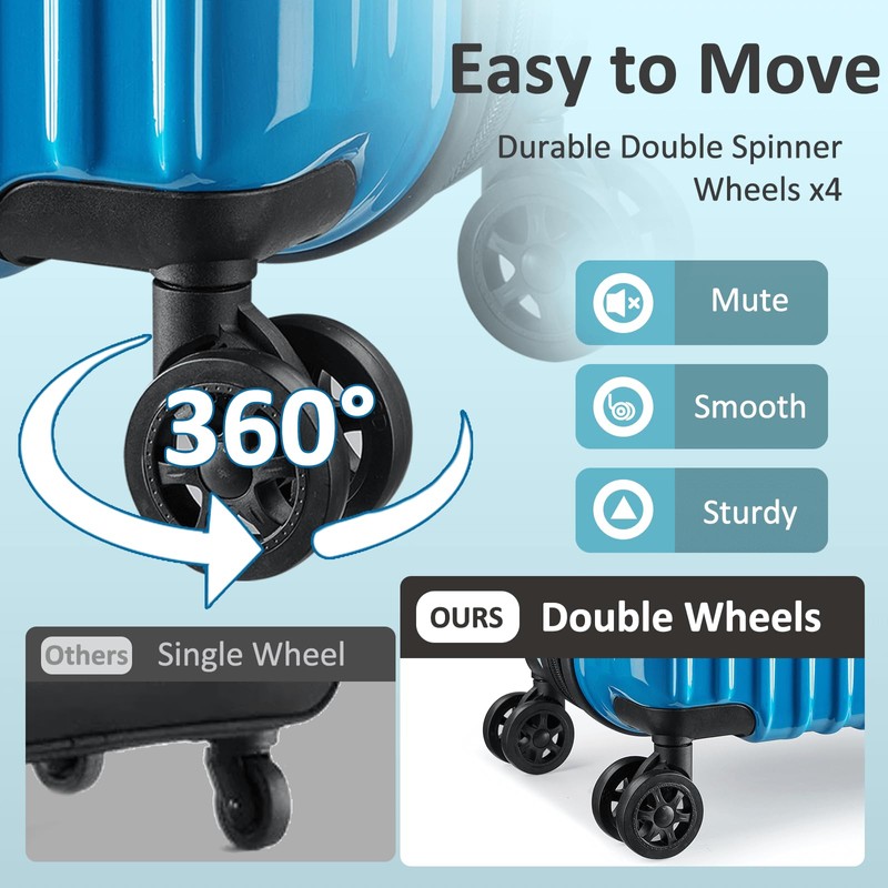 • 【360° Spinner Wheels & Lightweight】 Features 8 smooth spinner wheels (4 per suitcase) for effortless maneuverability in tight spaces. Ultra-lightweight yet durable design reduces airline weight fees and fatigue.