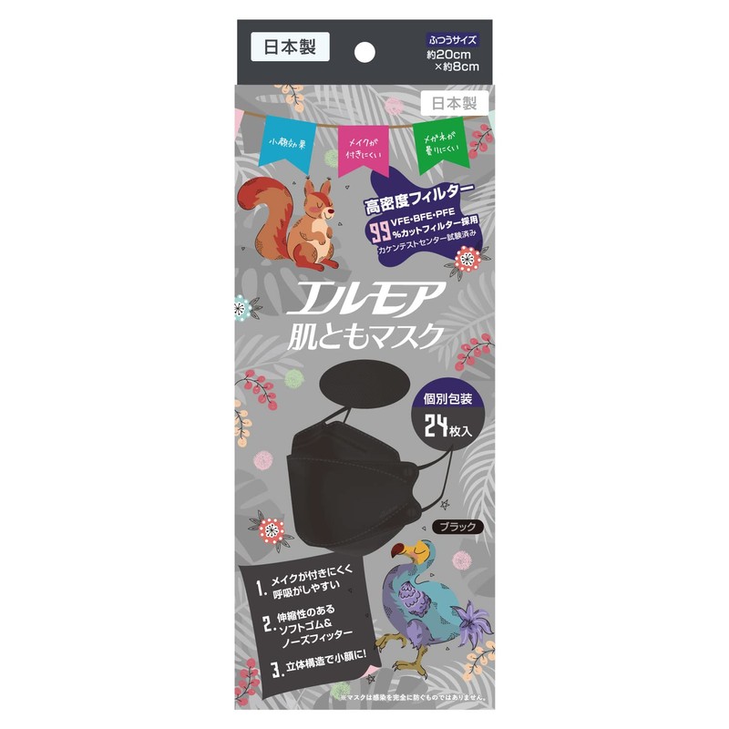 エルモア 肌ともマスク Vivid Animal ブラック 24枚