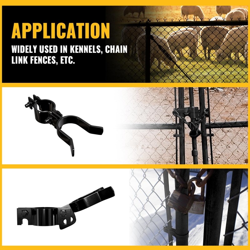 -PADLOCK HOLE DESIGN: Chain link fence gate latch has a padlock hole, you can hang your lock at the padlock hole to prevent the gate from being easily opened. Provides better security for chain link fence.