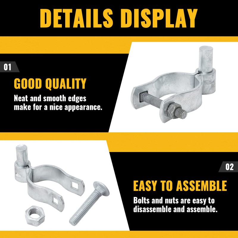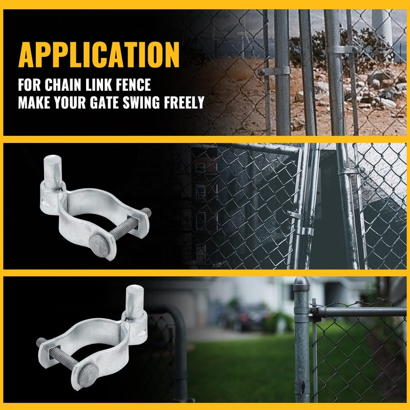 - 【HOT-DIP GALVANIZED】Heavy duty gate hinge with strong hardness, high corrosion resistance. Chain link fence gate hinges are not easy to rust and have a long life span. Chain link gate hardware has great performance in outdoor environments.