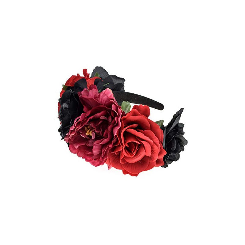 Vividsun Frida Kahlo Mexican Rose Flower Crown Day of The Dead Floral Crown (red Black)