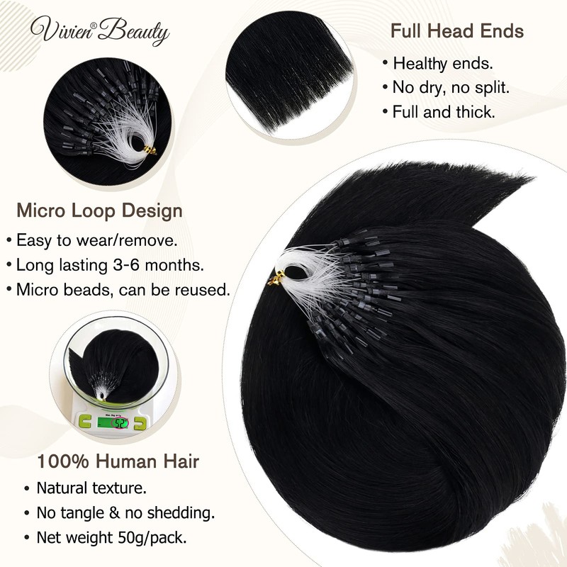 - Remy human hair extensions: Vivien Micro Loop extensions made of real human hair. Without any mixed animal or synthetic hair, it feels silky and soft, just like your own natural hair