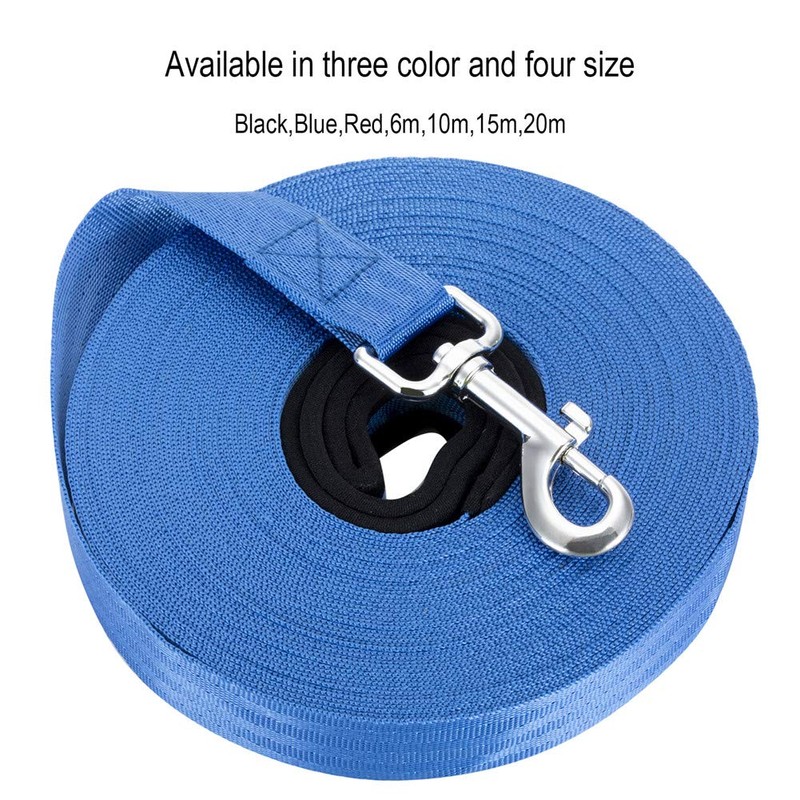 - Long lead: with a length of 15 m, this recall lead helps you train your dog on calls should he run away a little. Or simply guide your dog across fields without worrying about it running away.