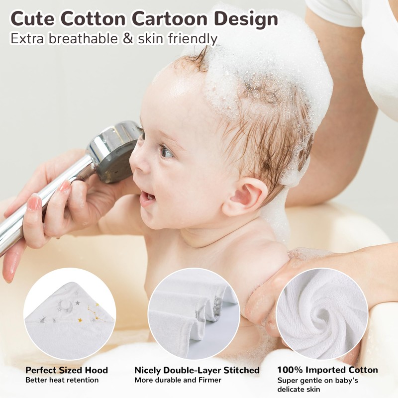 - Superior Absorbency: Drying your baby quickly has never been easier! Our hooded baby towels are designed to soak up moisture instantly, leaving your baby warm and dry. Say goodbye to shivering after bath time or swimming.