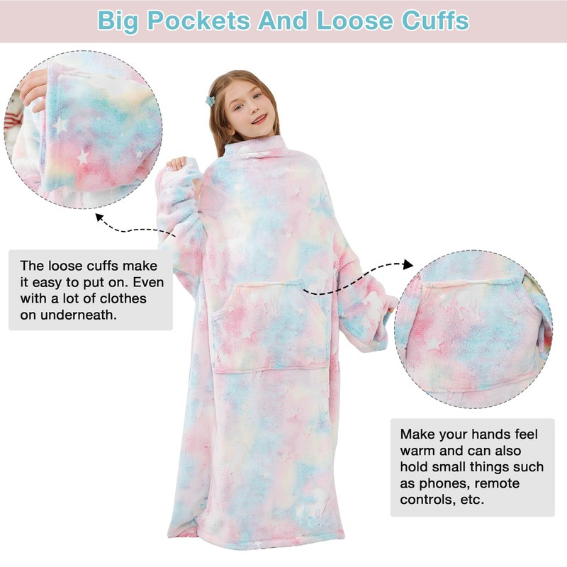 - 【Perfect Gift for Every Occasion】An ideal present for birthdays, back-to-school, Christmas, and graduation, our wearable fleece blankets cater to every child's joyous moments. With options like pink rainbow, white unicorn, truck football, and car in a variety of colors and prints, choosing the perfect style has never been more convenient!