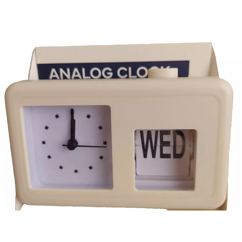 Vivitar Analog Clock White Retro Look Flip Date Desk Office Shelf Battery Power