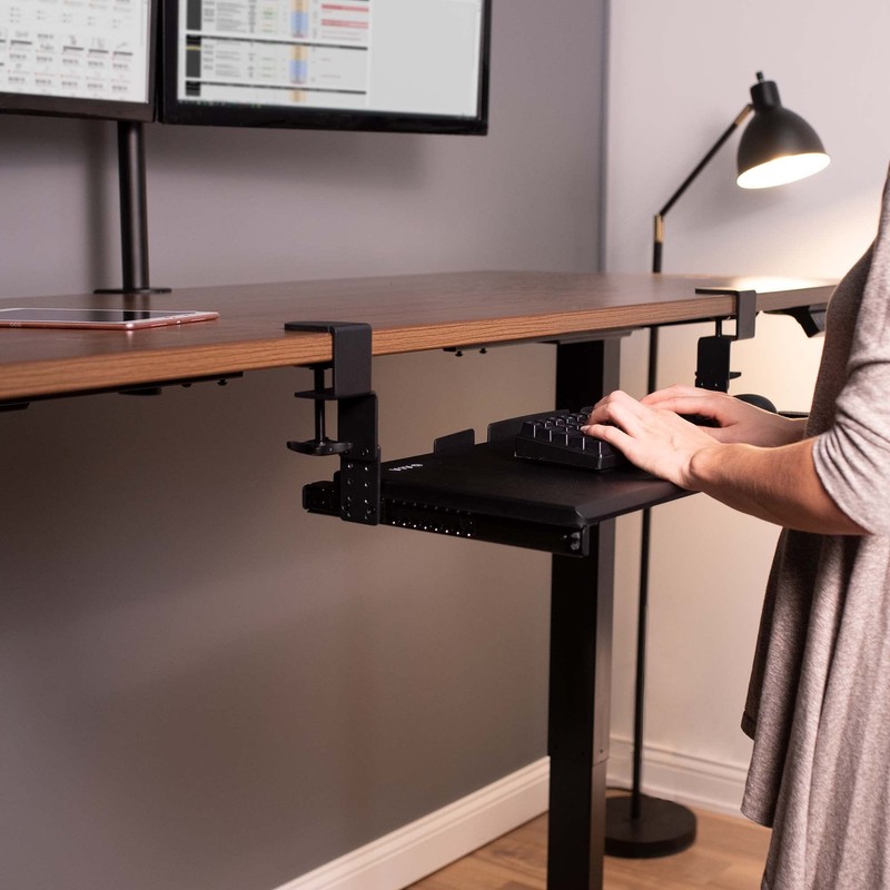 - Sturdy C-Clamps - Attach the keyboard tray to your workstation without causing any damage to your desk (1.75" Maximum Desk Thickness) with sturdy C-clamps that hold everything tightly in place and are easily adjustable for user convenience. Before purchasing, please make sure that your desk surface does not exceed a thickness of 1.75".