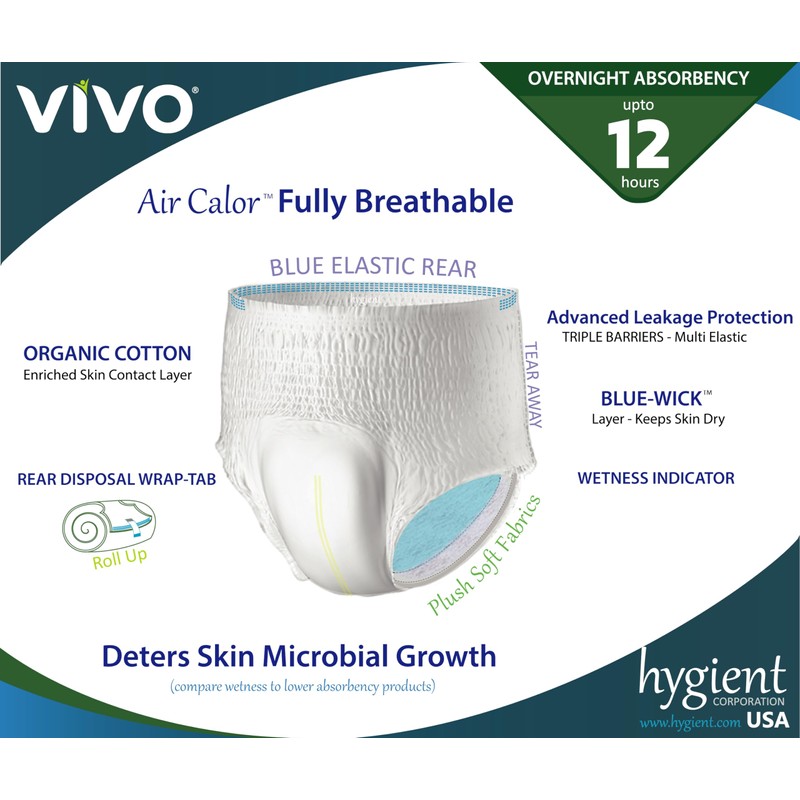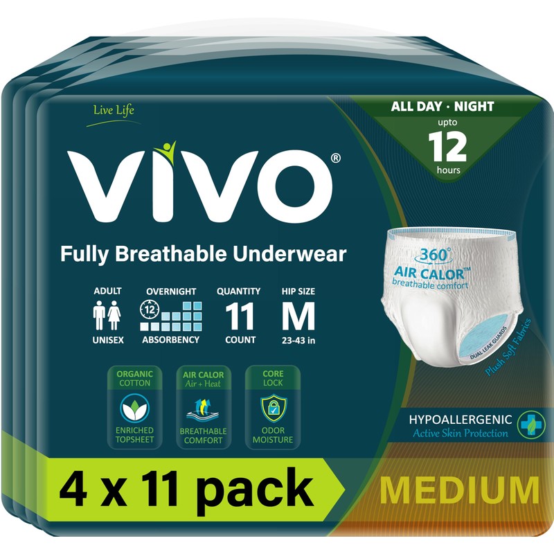VIVO Organic Cotton Sensitive Skin Overnight Adult Incontinence Pullup Underwear, Women & Men, Medium 44 Count