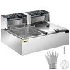 - POWERFUL PERFORMANCE - 2 separate 2500W fryer basins ensure frying the food quickly; The double deep fryer not only performs well for home use but also is perfect for commercial use, such as fast food stands, restaurants, supermarkets, snack bars, etc.; Suitable for frying chips, fish, chicken, doughnuts, fritters, onion rings, shrimp, French fries, etc.