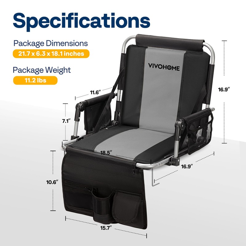 - PORTABLE & LIGHTWEIGHT - The VIVOHOME stadium seat weighs only 4.4 lbs. (each) and folds to a compact size of 18.9×16.9 inches, making it easy to transport; You can choose between two carrying options: a shoulder strap or hand-held; The lightweight design and carrying straps ensure hassle-free transportation