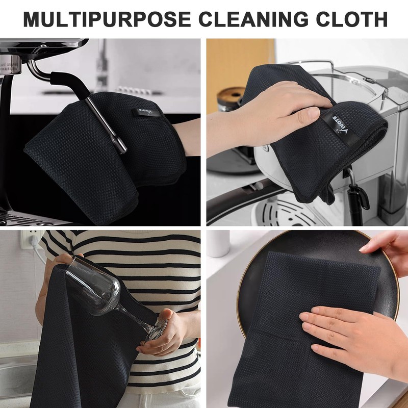 VIVOTE 4 Packs Black Tea Towels, Super Absorbent No lint Kitchen Towel, Machine Washable Microfibre Waffle Cloth, No Water Marks Tea Towels for Kitchen, Barista Cloth, 50x70 CM