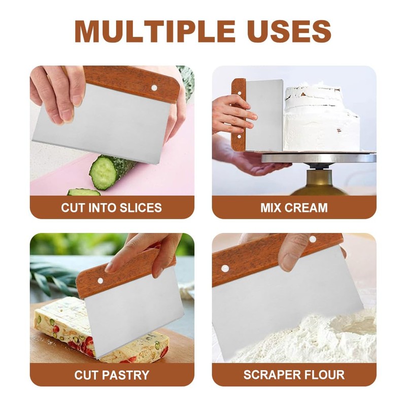 - Firm Grip and Modern Design: The bread scraper has a comfy wooden handle. Ideal for scooping food into a mixing bowl or wiping the countertop. The pastry scraper is user-friendly, boosting baking efficiency and preventing hand and wrist tiredness
