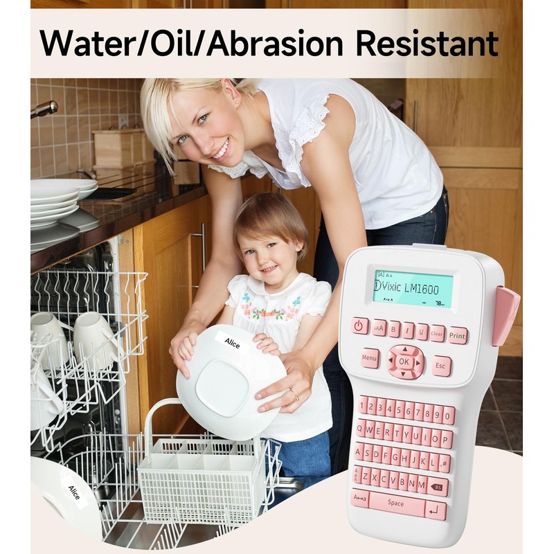 Vixic Label Maker, Portable Label Maker Machine with Tapes LM1600, Backlighting LCD Screen Label Maker with QWERTY Keyboard, Pink Rechargeable Handheld Labeler, Home School Office Organization