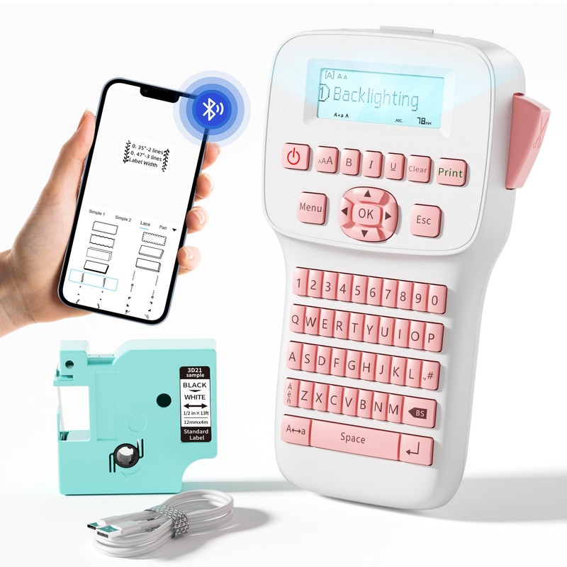 - Backlit LCD Screen: Handheld label maker features a clear screen and built-in backlight for dark environments and bright light environments, allowing you to unleash your creativity even in low-light conditions. It is easy to carry anywhere. Excellent features include automatically turning off when the backlit screen does not work