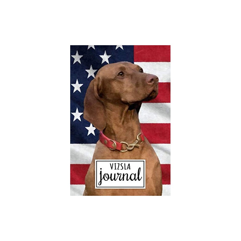 Vizsla Journal: VIZSLA DOG WITH USA AMERICAN FLAG Portrait Painting, Lined Notebook/Journal, Patriotic Gift for Dog Lovers/Owners, 6x9 Size, 110 Pages include 2020-2021 Yearly Calendar