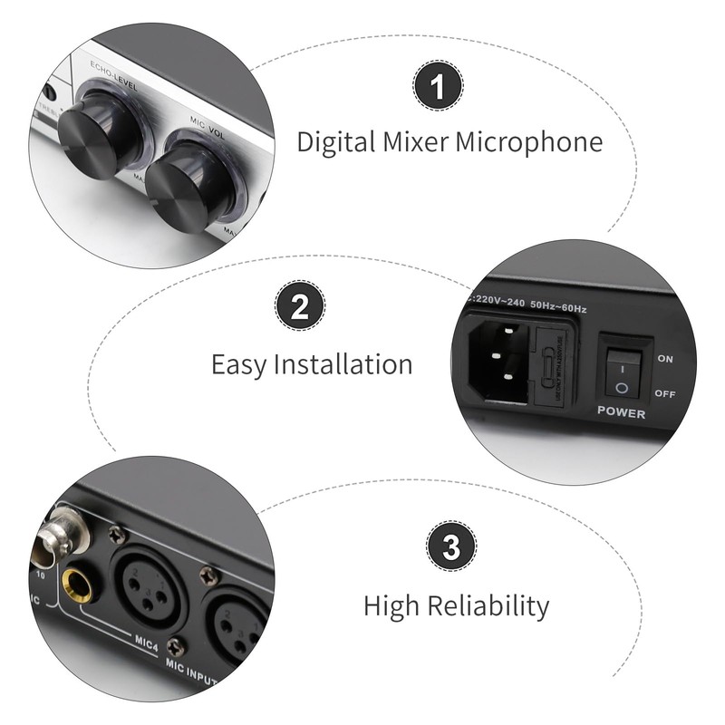• Intuitive Sound Adjustment: Featuring three sensitive damping knobs and discreet operational controls, you can fine-tune volume and reverb settings for both microphone and music independently, providing a tailored audio experience