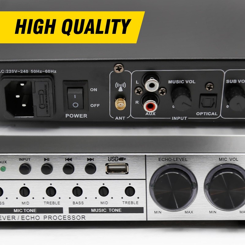 • Enhanced Stereo Experience: Adjust bass, center, left, and right channels independently for a rich and immersive sound. This processor ensures your vocals are full and nuanced, delivering a captivating stereo effect for an enjoyable karaoke experience